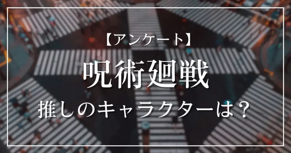 ホームアンケート【アンケート】呪術廻戦で推しのキャラクターは? 2026.1.7このサイトはプロモーションを含みます 呪術廻戦で推しのキャラクターは? 虎杖悠仁 伏黒恵 釘崎野薔薇 禪院真希 狗巻棘 禪院直哉 乙骨憂太 五条悟 夏油傑 七海建人 伏黒甚爾 脹相 両面宿儺 その他結果だけ見る Loading ... 👇のボタンから理由や感想をぜひ教えてください!コメントする この記事でわかること1 呪術廻戦をどこまで知ってる?検定を受けて腕試ししよう💪2 アニメに関するアンケートはこちら!3 その他のアンケート呪術廻戦をどこまで知ってる?検定を受けて腕試ししよう💪【呪術廻戦クイズ】アニメ好きなら全問正解?!人気アニメのクイズに挑戦!アニメに関するアンケートはこちら!この冬一番楽しみなアニメは?投票受付中!チェンソーマンの推しキャラは?劇場版銀魂の主題歌で1番好きなのは?その他のアンケートプロセカで好きな曲は?なとりの楽曲で鬼リピするのは?ボカロで古参ホイホイだと思う曲は? コメントを残す コメントをキャンセルメールアドレスが公開されることはありません。 ※ が付いている欄は必須項目ですコメント ※名前 ※ メール ※ サイト 次回のコメントで使用するためブラウザーに自分の名前、メールアドレス、サイトを保存する。 Δ