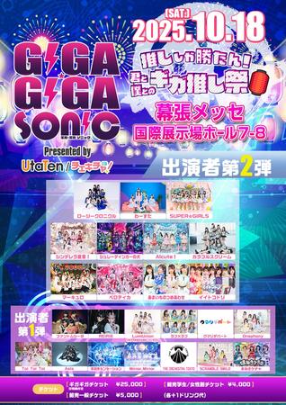 2025年10月18日(土)に、「GIGA•GIGA SONIC presented by UtaTen / チェキチャ! 〜推ししか勝たん!君と僕とのギガ推し祭🏮〜の第ニ弾出演者が発表!10月はギガソニを観に会場までアイドルを応援しに来よう!