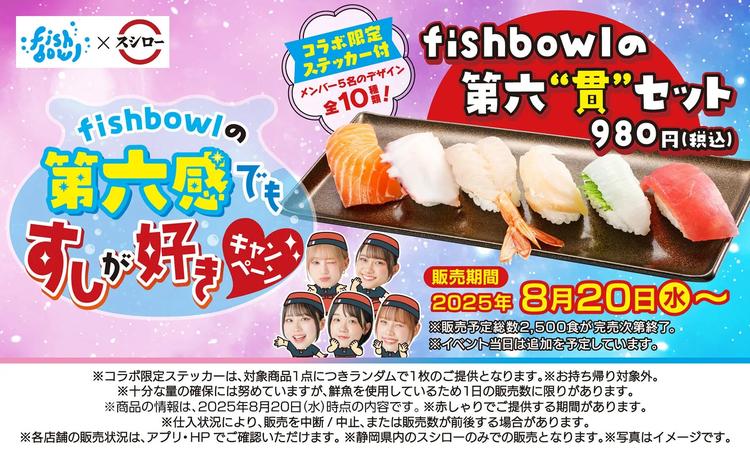 今回のコラボレーションの主役は、fishbowlの人気楽曲「六感」にちなんで名付けられた「fishbowlの第六“貫”セット」です。このセットは、単なるコラボメニューの枠を超え、fishbowlメンバー5名がそれぞれ選んだ「お気に入りの寿司ネタ」に、スシローが誇る「厳選まぐろ赤身」を加えた、まさに夢のような盛り合わせとなっています。