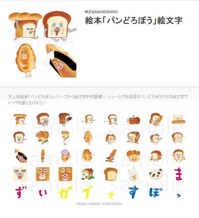 株式会社KADOKAWA 絵本「パンどろぼう」絵文字 大人気絵本「バンどろぼう」シリーズから絵文字が初登場! シュールでお茶目なパンどろぼうたちの絵文字で トークを盛り上げよう! ずいガブすぽ Keiko Shibata / KADOKAWA