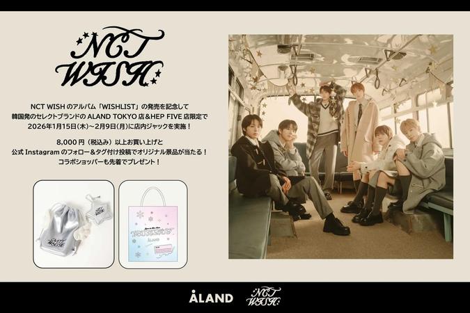 K-POPシーンを牽引するグローバルグループ、NCT WISHが、日本のKカルチャーファッションを発信するセレクトブランド「ALAND(エーランド)」と初のコラボレーションを実現しました。彼らの日本オリジナルミニアルバム『WISHLIST』の発売を記念し、2026年1月15日(木)から2月9日(月)までの期間、ALAND TOKYO店(東京都渋谷区宇田川町)とALAND ヘップファイブ店(大阪府大阪市北区)がNCT WISH一色に染まる、ファン垂涎の店内ジャックイベントが開催されます。店舗に一歩足を踏み入れた瞬間から、NCT WISHの世界観に包まれ、まるでメンバーがそこにいるかのような感覚に陥ることでしょう。