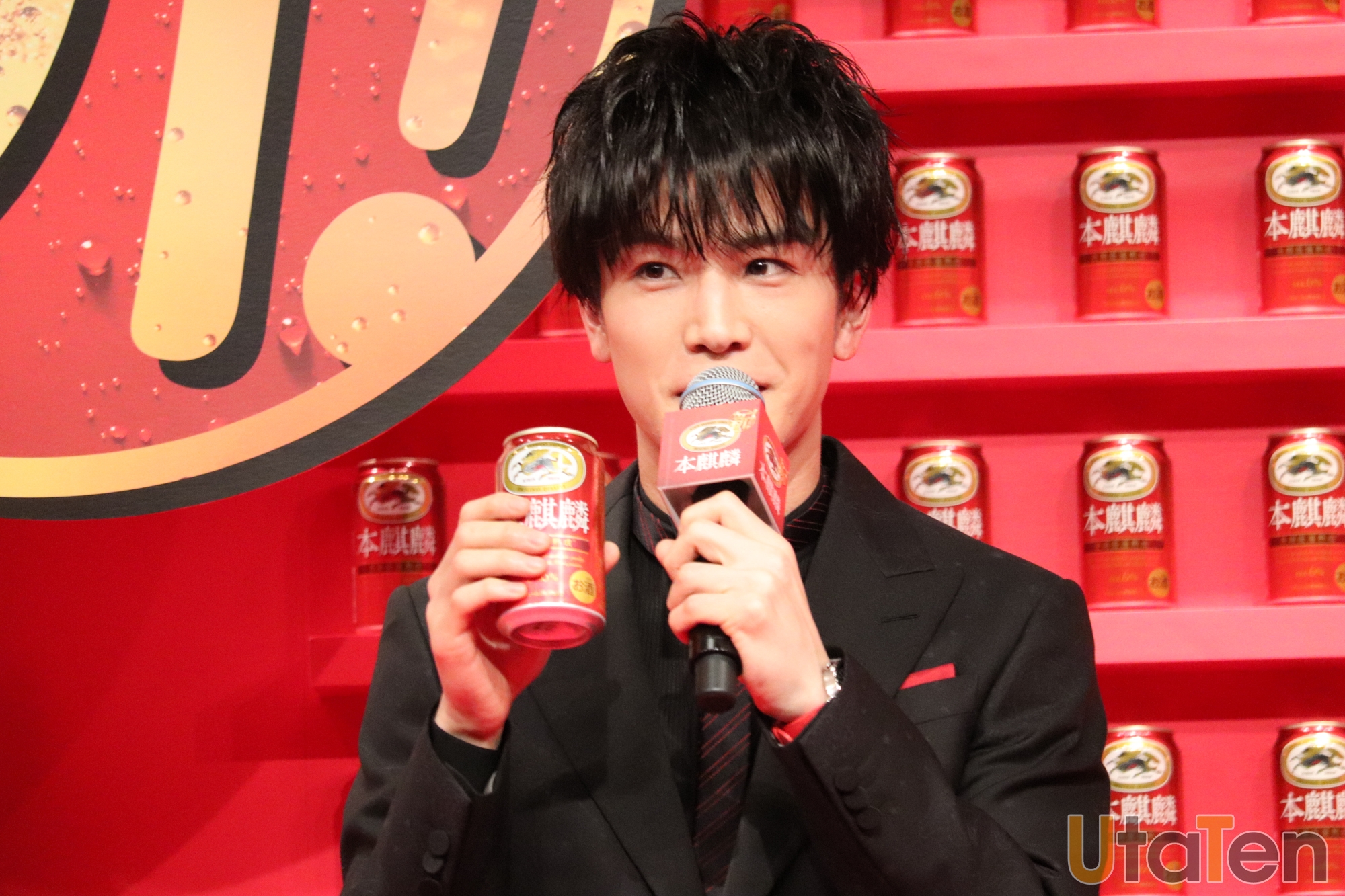 この日はスペシャルゲストとして、EXILE/三代目 J SOUL BROTHERSの岩田剛典、元AKB48でタレントの小嶋陽菜、お笑いタレント土田晃之の3名が、リニューアルした「本麒麟」の本体カラーである"赤"をポイントにした衣装で出席した。