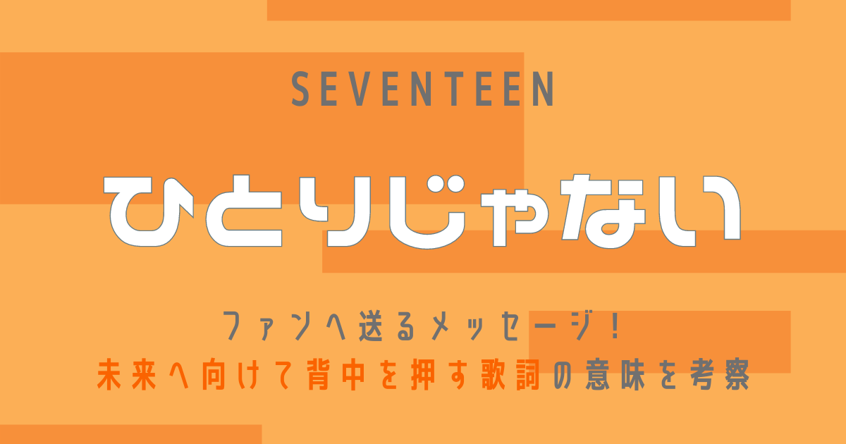 SEVENTEENの『ひとりじゃない』は、コロナ禍で落ち込む心をストレートな表現で慰め、勇気を与えてくれる応援歌です。大切な人たちと会えなくても決してひとりじゃないこと、必ずまた会える日が来るという希望を信じられる温かい歌詞に力づけられるでしょう。