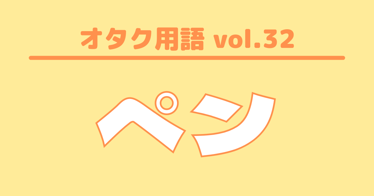 【オタク用語 vol.32】ペンとは?意味・使い方・例文 特集 #オタク用語 新米アイドルオタクがぶち当たる壁「オタク用語」!謎の言葉に困惑中の方に向けて、UtaTen編集部がオタク用語の意味や例文を紹介する辞典を作っちゃいました!あなたもオタク言葉を使いこなすプロになりましょう! 更新日:2021年7月15日 この記事の目次 [表示] ・「ペン」の意味 ・「ペン」を使った例文 ・オタク用語一覧 「ペン」の意味 팬(ペン) ファン 韓国語でFをエプと発音することに由来 好きなメンバーやグループ名の後につけて「○○ペン」と使われる ※主な使用界隈:K-POP 「ペン」を使った例文 BIGBANGペンと繋がりたい オチてる時もアガらざるを得ないBIGBANG厳選の5曲はコレで決まり! BIGBANG 特集 オタク用語一覧 ヨントン マンネ チッケム モッパン センイル SINの法則 ペンミ イルデ オッパ ヌナ・オンニ ▼ここからチェック!! UtaTenオタク部 最新のコラム&特集をもっと見る