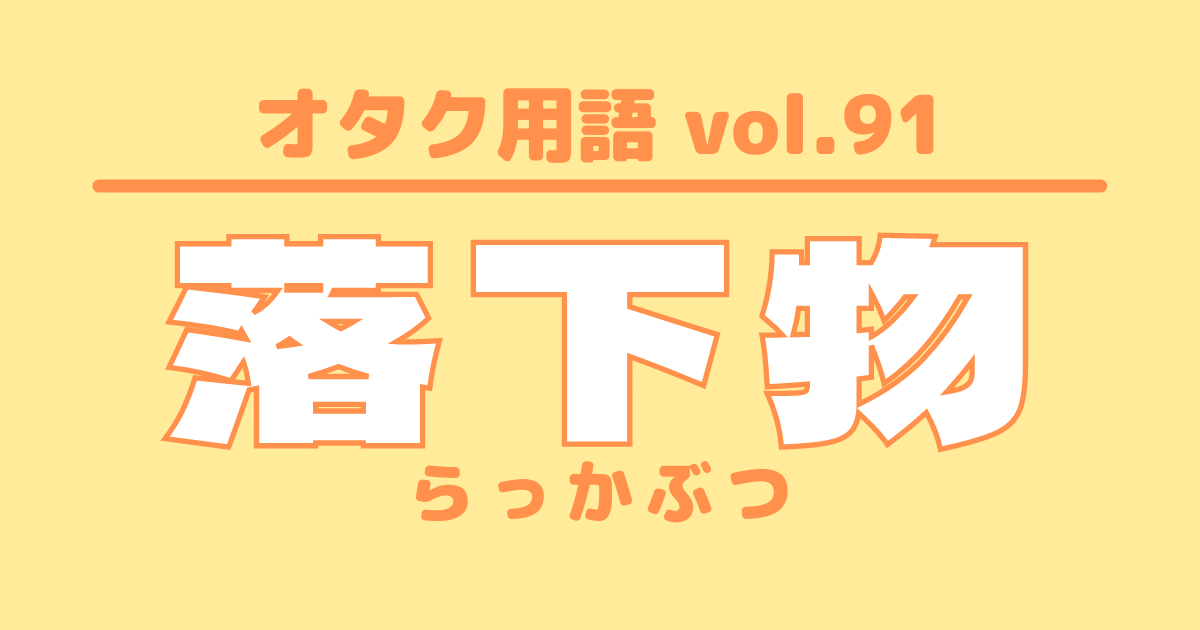 【オタク用語 vol.91】落下物とは?意味・使い方・例文 特集 #オタク用語 新米アイドルオタクがぶち当たる壁「オタク用語」!謎の言葉に困惑中の方に向けて、UtaTen編集部がオタク用語の意味や例文を紹介する辞典を作っちゃいました!あなたもオタク言葉を使いこなすプロになりましょう! 更新日:2021年7月19日 この記事の目次 [表示] ・「落下物」の意味 ・「落下物」を使った例文 ・オタク用語一覧 「落下物」の意味 コンサートで頭上から降ってくる演出グッズの総称 銀テープや紙吹雪、風船などが含まれる ※主な使用界隈:ジャニーズ 「落下物」を使った例文 落下物、キラキラして綺麗だった! オタク用語一覧 シンメ DD 他担狩り G メンカラ 自担 同担 量産型オタク リアコ ビジュ ▼ここからチェック!! UtaTenオタク部 最新のコラム&特集をもっと見る