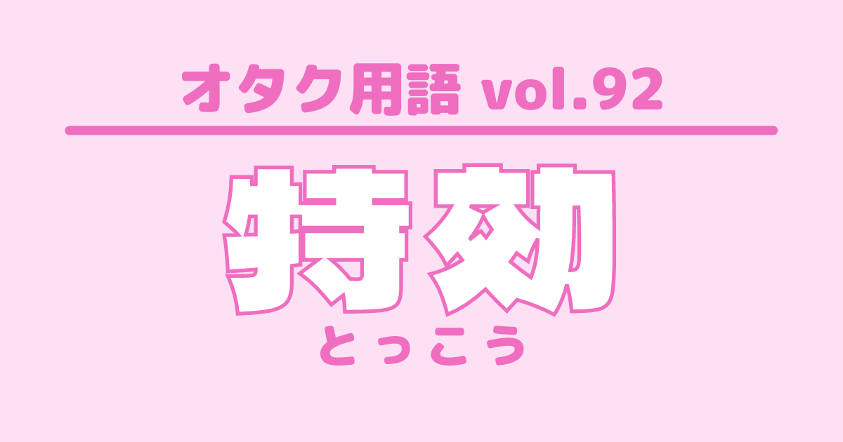 【オタク用語 vol.92】特効とは?意味・使い方・例文 特集 #オタク用語 [この記事の画像を見る(全1枚)] 新米アイドルオタクがぶち当たる壁「オタク用語」!謎の言葉に困惑中の方に向けて、UtaTen編集部がオタク用語の意味や例文を紹介する辞典を作っちゃいました!あなたもオタク言葉を使いこなすプロになりましょう! 更新日:2021年7月19日 この記事の目次 [表示] ・「特効」の意味 ・「特効」を使った例文 ・オタク用語一覧 「特効」の意味 特殊効果の略語 コンサートで行われる照明や音響以外の演出の総称 スモークや花火、炎や水などが含まれる ※主な使用界隈:ジャニーズ 「特効」を使った例文 嵐の特効はメンバーが映える完璧な構成… オタク用語一覧 シンメ DD 他担狩り G メンカラ 自担 同担 量産型オタク リアコ ビジュ ▼ここからチェック!! UtaTenオタク部 最新のコラム&特集をもっと見る