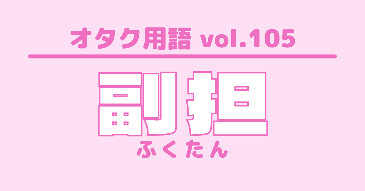 【オタク用語 vol.105】副担とは?意味・使い方・例文 特集 #オタク用語 [この記事の画像を見る(全1枚)] 新米アイドルオタクがぶち当たる壁「オタク用語」!謎の言葉に困惑中の方に向けて、UtaTen編集部がオタク用語の意味や例文を紹介する辞典を作っちゃいました!あなたもオタク言葉を使いこなすプロになりましょう! 更新日:2021年7月19日 この記事の目次 [表示] ・「副担」の意味 ・「副担」を使った例文 ・オタク用語一覧 「副担」の意味 DD(掛け持ち)しているグループの中で、神担に続いて二番目以降に好きなメンバーこと ※主な使用界隈:ジャニーズ 「副担」を使った例文 神担以外はみんな副担 オタク用語一覧 シンメ DD 他担狩り G メンカラ 自担 同担 量産型オタク リアコ ビジュ ▼ここからチェック!! UtaTenオタク部 最新のコラム&特集をもっと見る