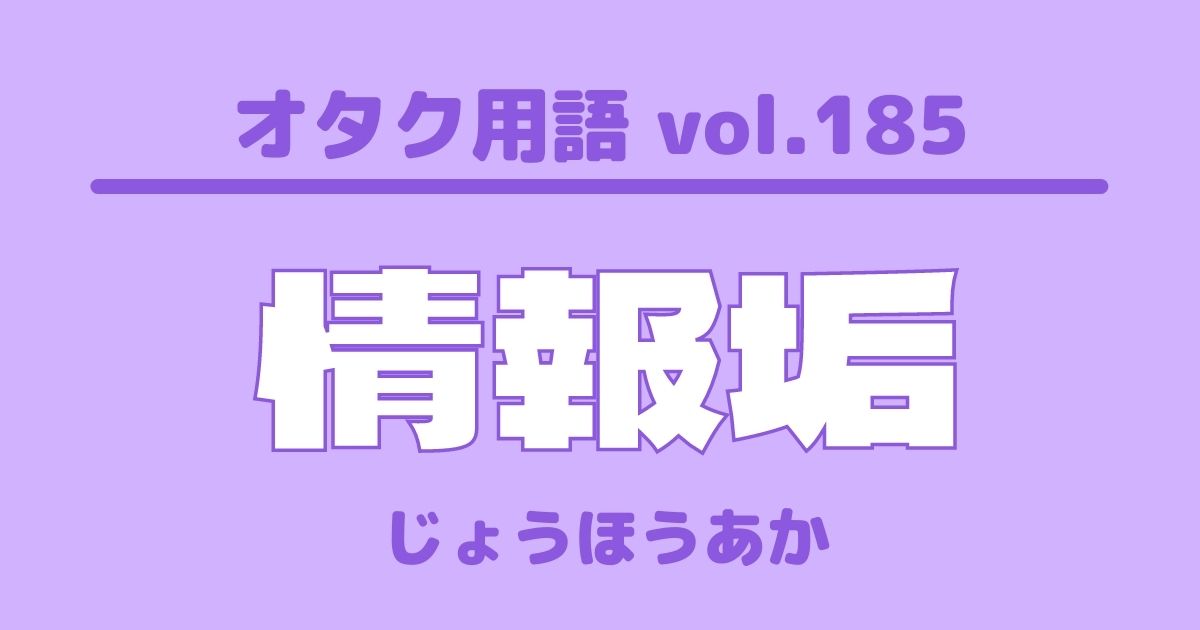 【オタク用語 vol.185】情報垢とは?意味・使い方・例文 特集 #オタク用語 [この記事の画像を見る(全1枚)] 新米アイドルオタクがぶち当たる壁「オタク用語」!謎の言葉に困惑中の方に向けて、UtaTen編集部がオタク用語の意味や例文を紹介する辞典を作っちゃいました!あなたもオタク言葉を使いこなすプロになりましょう! 更新日:2021年7月26日 この記事の目次 [表示] ・「情報垢」の意味 ・「情報垢」を使った例文 ・オタク用語一覧 「情報垢」の意味 TwitterなどのSNSを通してジャニーズアイドルの情報を拡散するアカウント。 ※主な使用界隈:ジャニーズ 「情報垢」を使った例文 情報垢のおかげで、雑誌の発売情報を見落とさずに済んだ。 オタク用語一覧 シンメ DD 他担狩り G メンカラ 自担 同担 量産型オタク リアコ ビジュ ▼ここからチェック!! UtaTenオタク部 最新のコラム&特集をもっと見る