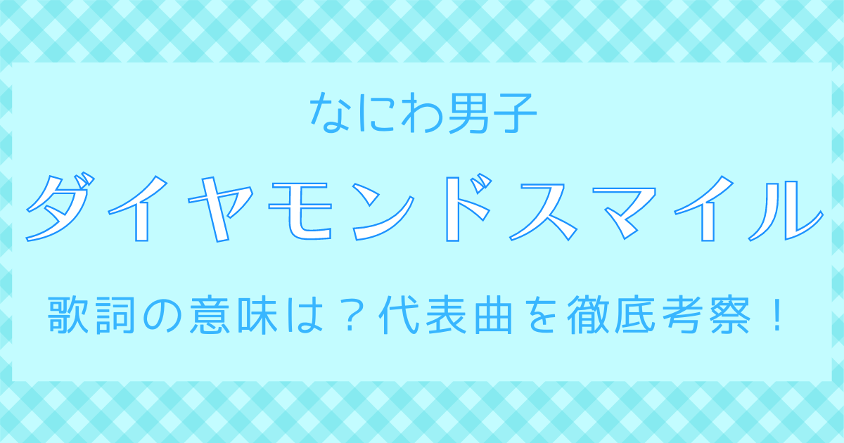 今回はなにわ男子『ダイヤモンドスマイル』の歌詞の意味に迫りました。言葉のひとつひとつは様々な解釈が出来るこの楽曲ですが、全体を通してなにわ男子からファンに対する特別なメッセージのように感じられます。