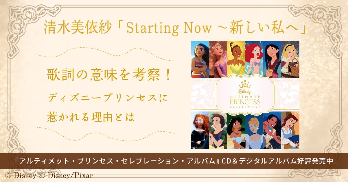 清水美依紗が歌う『Starting Now 〜新しい私へ』の歌詞には、時代を越えて世界中の女性たちを励まし元気づけてくれたディズニープリンセスの魅力が記されていました。