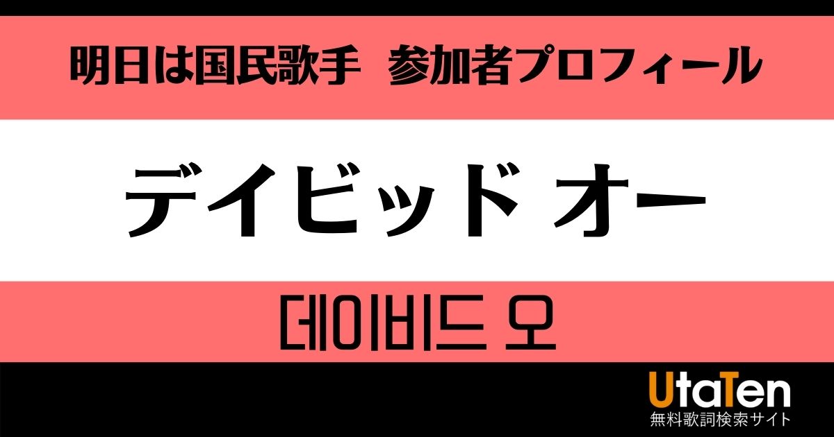 【明日は国民歌手】デイビッド オーのプロフィールは? 特集 明日は国民歌手 明日は国民歌手に参加しているデイビッド オーの年齢など顔写真付きでプロフィールを紹介します。韓国の超大型オーディション番組「明日は国民歌手」の出演者たちを知りたい人は必見!お気に入りの参加者を見つけて応援しましょう! 更新日:2022年3月25日 デイビッド オーのプロフィール 名前 デイビッド オー 年齢 31歳(2021年10月時点) 職業 歌手 主な経歴 MBC『偉大な誕生』TOP5 明日は国民歌手の優勝者は?全12回の結果やマスターたちの情報を紹介 明日は国民歌手 特集 UtaTen編集部 明日は国民歌手 歌詞ランキング 関連動画 特集記事 最新情報 最新のコラム&特集をもっと見る