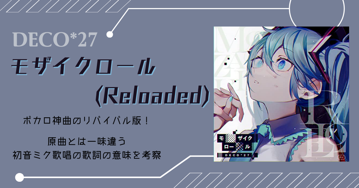 DECO*27の『モザイクロール(Reloaded)』は原曲の魅力をそのままに、ニュアンスの違う新しい楽曲として生まれ変わっています。変更歌詞に過去曲が用いられているのも、11年の活動があったからこそ生まれたアイディアです。