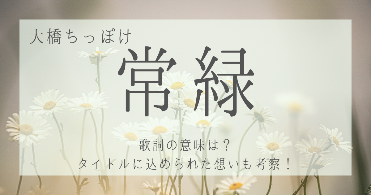 大橋ちっぽけ「常緑」の歌詞の意味を考察しました。植物が変わらず鮮やかな緑色を見せるように、「ずっと変わらない幸せ」を歌った楽曲だと感じられます。