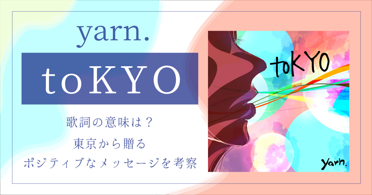 yarn.の『toKYO』はリズミカルで華やかな音楽に乗せて、明るい未来を想像させてくれる楽曲になっています。全体の歌詞からタイトルの表記が分かれている点に注目すると、東京だけでなく「to 今日」という意味も隠されていると考察しました。