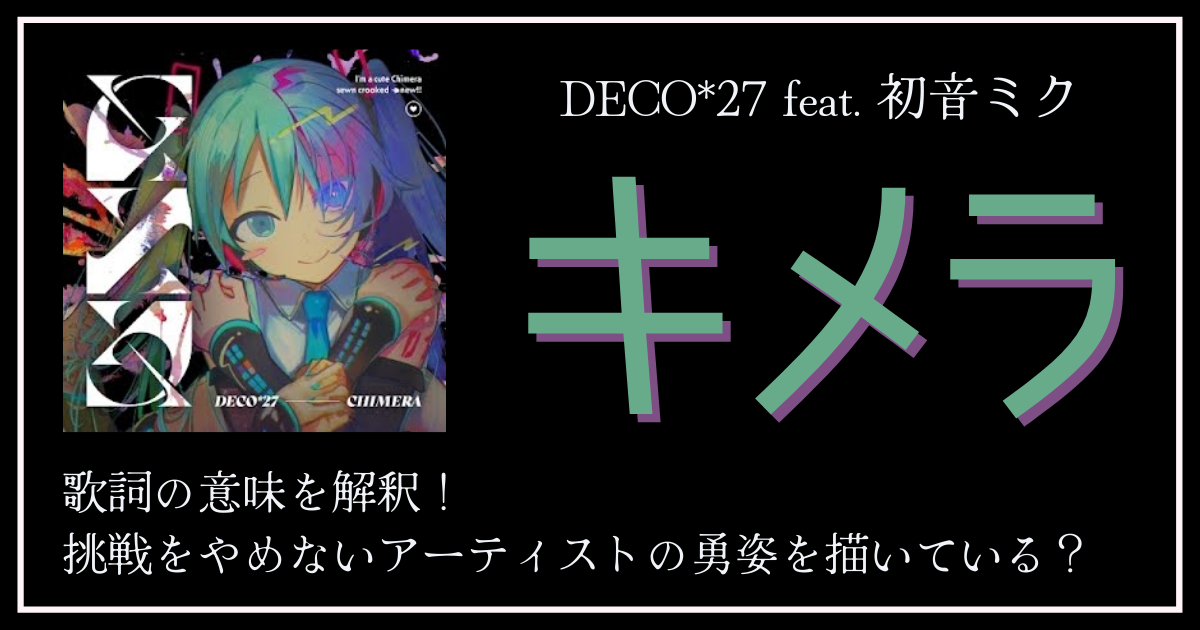 これらをアーティストと結び付けて考えると、「キメラ」は「多種多様な曲を作り続けることで出来上がっていく複雑怪奇なアーティスト像」であると解釈できそうです。DECO*27本人にとってはセルフ・イメージということになりますね。