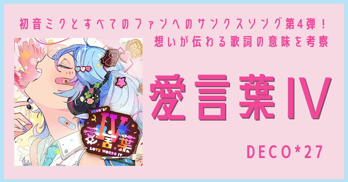様々な形の愛をテーマにしたボカロ曲で人気を集めるボカロP・DECO*27が、2022年5月27日にニューシングル『愛言葉Ⅳ』を配信リリース。