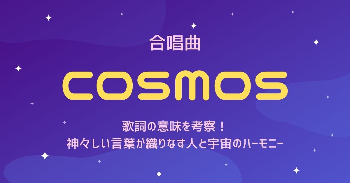 今回は、合唱曲『COSMOS』の歌詞の意味を考察しました。一見ちっぽけな私たち一人一人を広大な宇宙とリンクさせる、壮大で神秘的な歌詞でしたね。