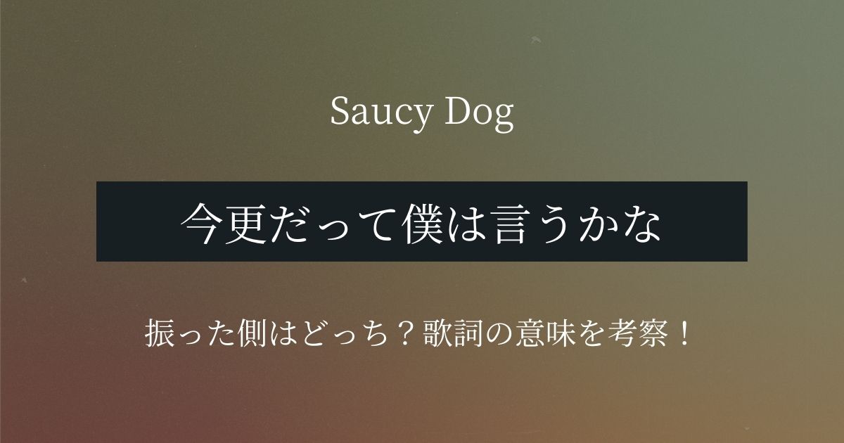 『今更だって僕は言うかな』は、スリーピースバンド『Saucy Dog(サウシードッグ)』が2020年にリリースしたアルバム『テイクミー』に収録されている楽曲です。別れた相手を思う切ない歌詞が多くのリスナーの心を掴んでいますが、その一方で「振った側はどっちなの?」という疑問を抱く声も多数。