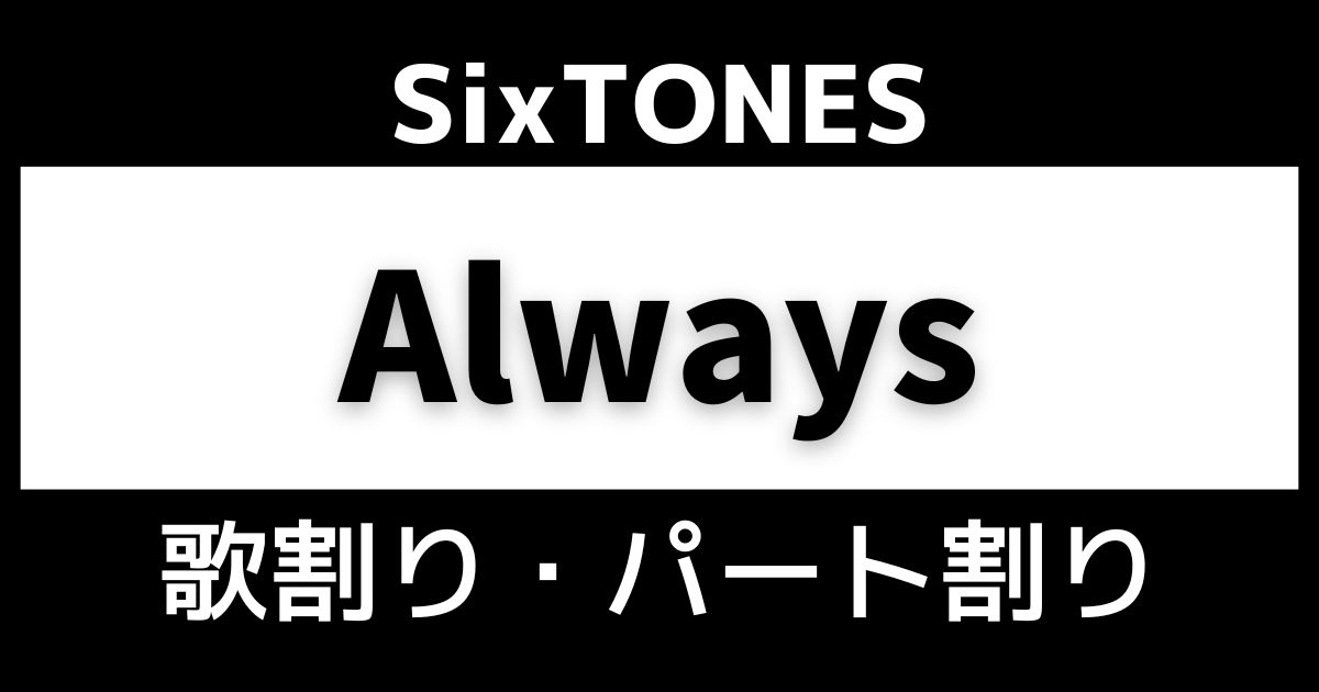 SixTONES「Always」歌割り・パート割り