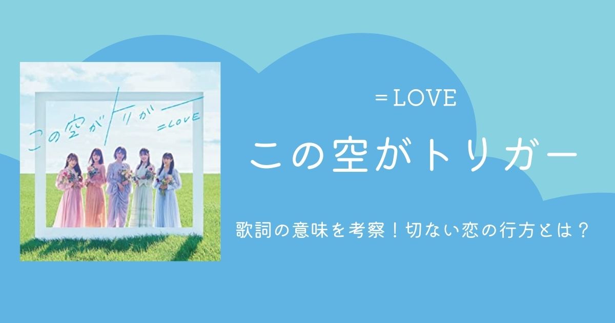 今回はイコラブの新曲『この空がトリガー』の歌詞について解説しました。甘酸っぱくもほろ苦い歌詞に、共感する女性は少なくないはず。