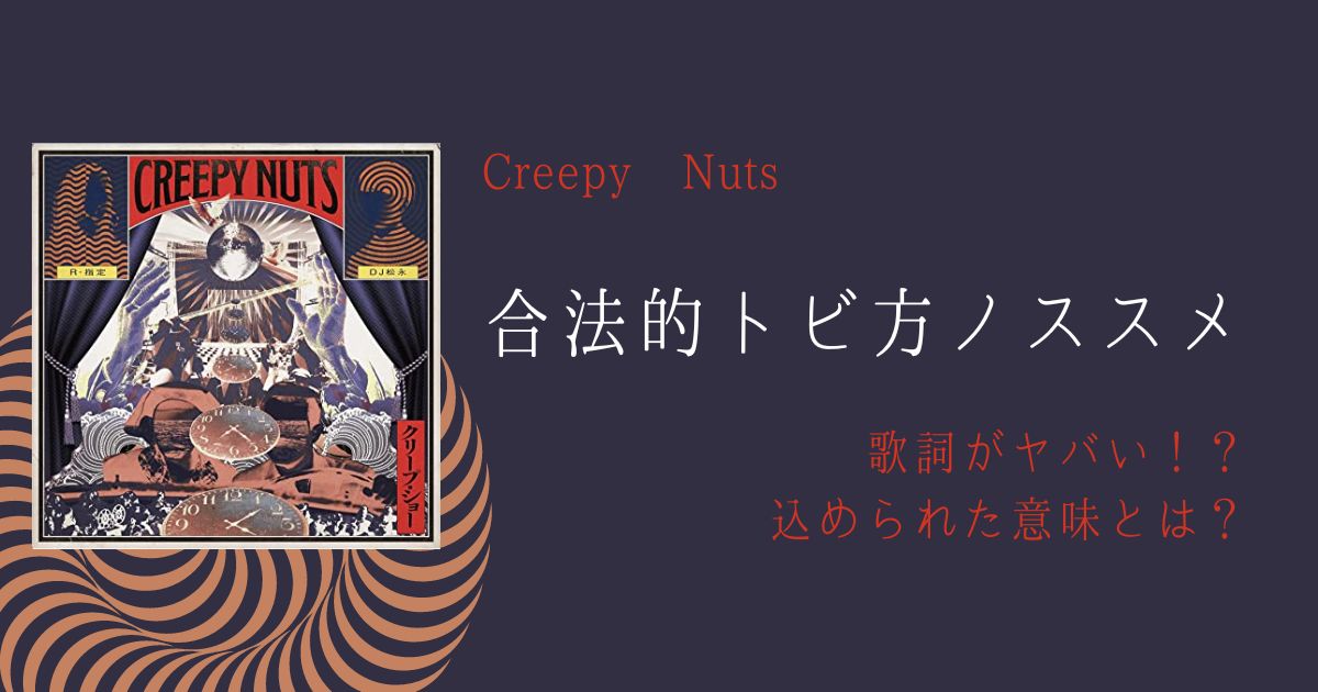 ぜひ皆さんもこの曲をはじめとするCreepy Nutsの名曲で、快感の世界へとトビましょう!