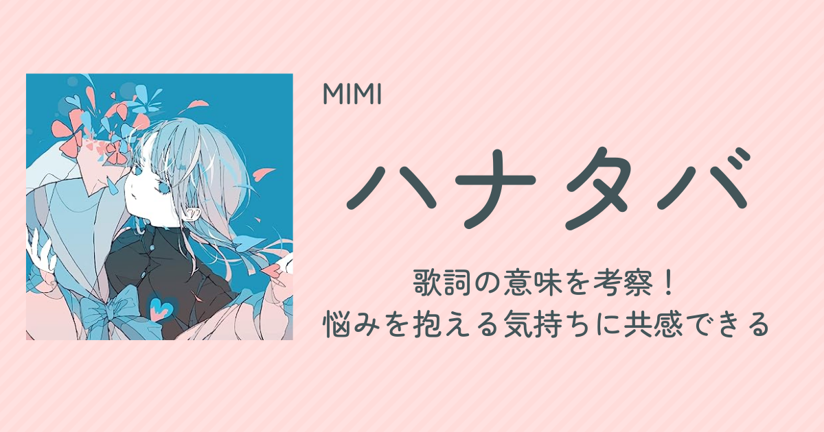 『ハナタバ』はどこか儚くも聴いた後に明るい気持ちにさせてくれるようなMIMIらしい世界観が魅力の楽曲です。孤独感や焦燥感といった感情は年代を問わず生まれるものなので、きっとどの世代の人もこの歌詞に共感し穏やかな気持ちになれるでしょう。