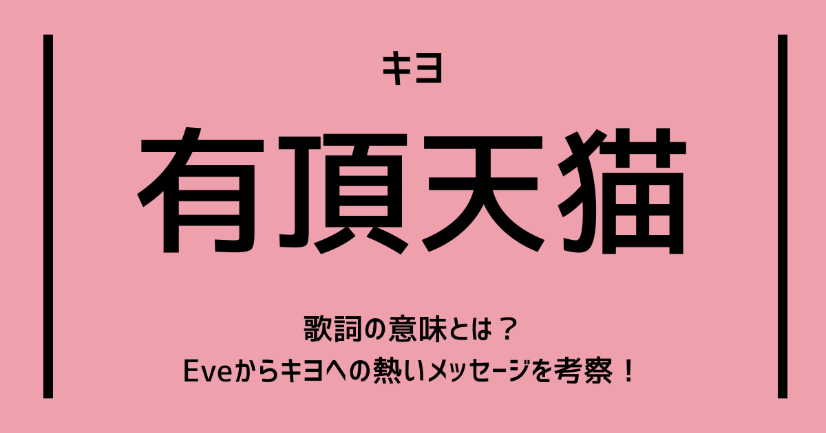 今回は、キヨ『有頂天猫』の歌詞の意味を考察しました。Eveからキヨへの熱いメッセージが感じられる、疾走感のある爽快な歌詞でしたね。