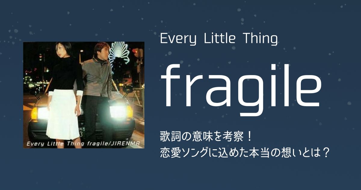 Every Little Thingの『fragile』は持田香織が改めて歌と向き合い、アーティストとしての覚悟と決意を新たにする想いを恋愛に例えて綴った楽曲です。その後、彼女がユニットとしてもソロとしても魅力的な楽曲を作り続け、声帯結節を患いながらもライブツアーを精力的に続けてこられたのは、この楽曲があったからなのかもしれません。