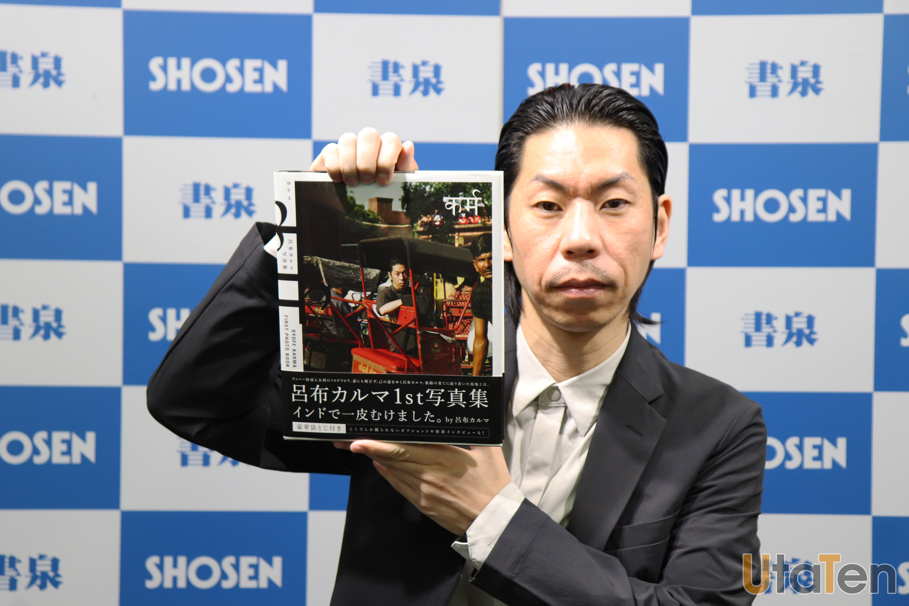 やはり、”SHOSEN”というパネル前に立つことに感慨深い様子の呂布カルマ。「感動ですね」とひと言発すると、司会者より「自身が写真集を発売することについて」と質問されると、「悪い冗談ですよね。悪ふざけだなと思いました」と会場の笑いを誘った。