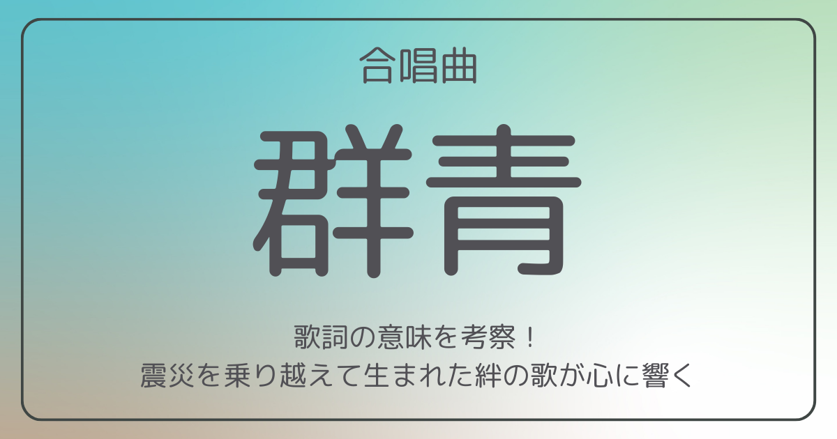 合唱曲『群青』は、震災に遭い苦しい時間を過ごした卒業生たちが抱く友への純粋な想いを詰め込んだ卒業ソングです。この歌詞に込められた気持ちは、どの地でどのような日々を過ごした生徒たちにとっても自分の境遇に置き換えて共感できるでしょう。