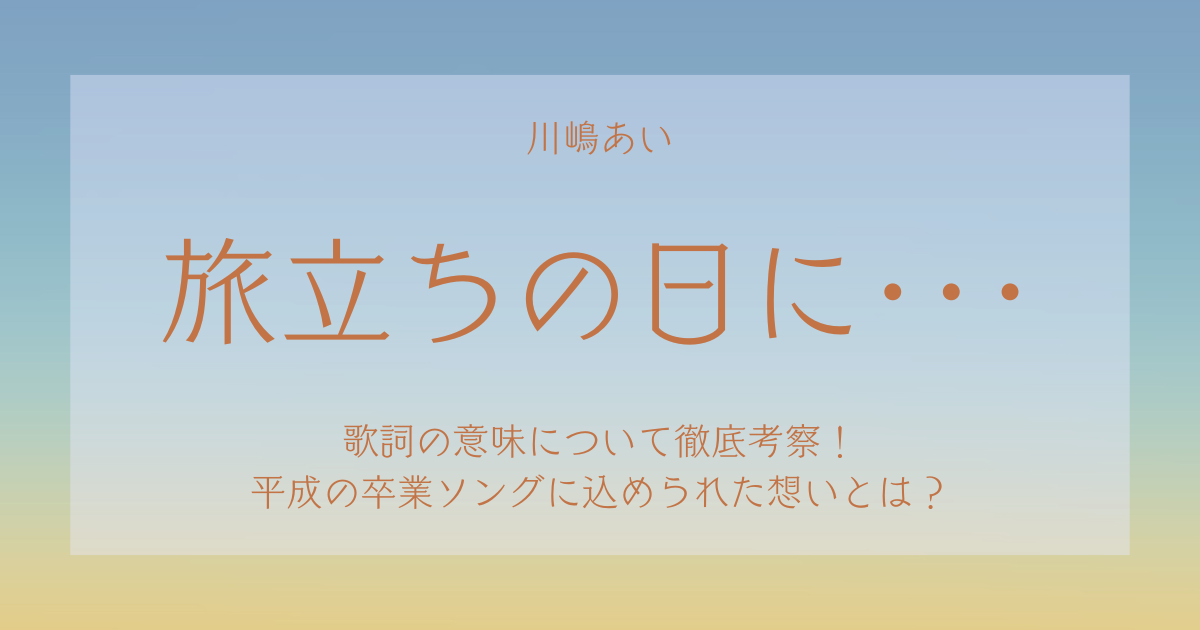 今回は、川嶋あい『旅立ちの日に・・・』の歌詞の意味について考察しました。まさに卒業ソングにもってこいの曲でしたね。
