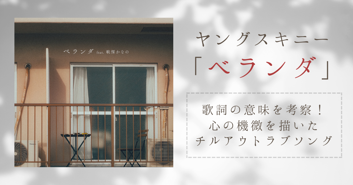 今回は、ヤングスキニー『ベランダ feat. 戦慄かなの』歌詞の意味を考察しました。曲の雰囲気と煙草の相性が抜群で、まさにチルアウトを感じられる令和のラブソングではないでしょうか。