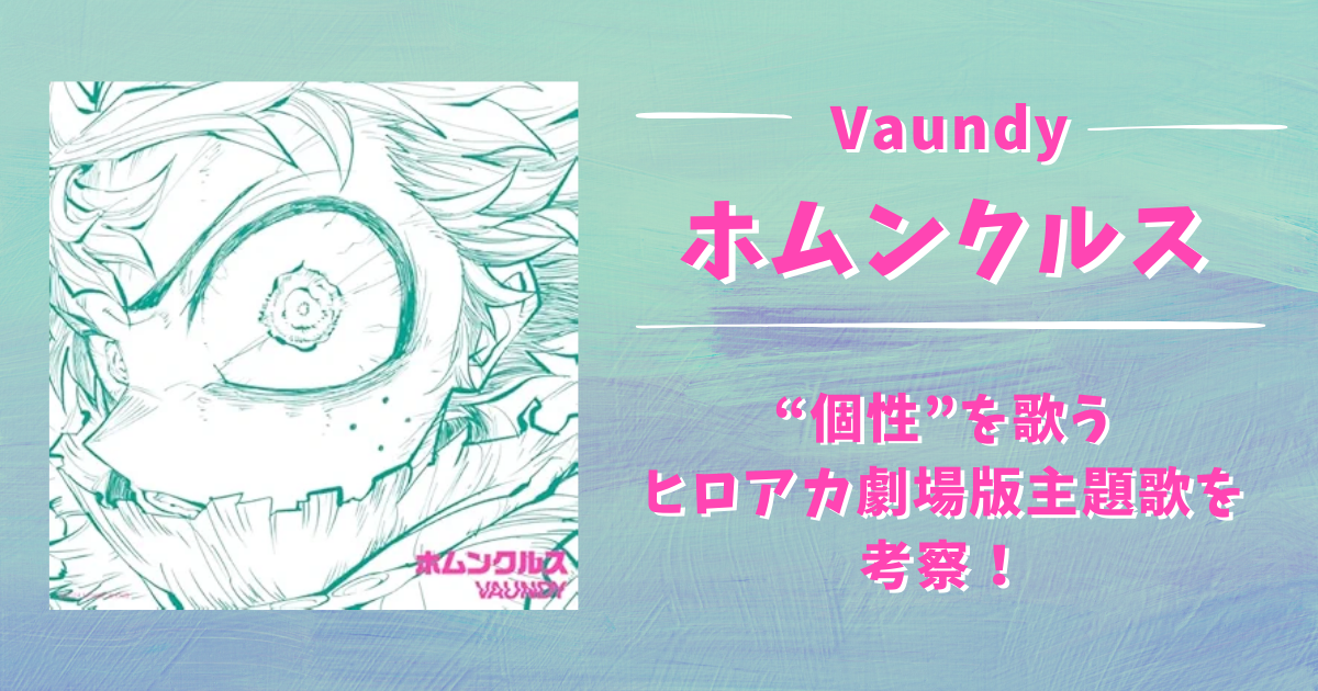 2024年8月2日公開の人気TVアニメの劇場版『僕のヒーローアカデミア THE MOVIE ユアネクスト』の主題歌は、Vaundyによる書き下ろし楽曲『ホムンクルス』です。シングルのジャケットビジュアルは映画のキャラクターデザイン・メイン作画監督である林祐己による描き下ろしイラストで、力強さを感じるヒロアカの主人公・デクの表情に目を奪われます。