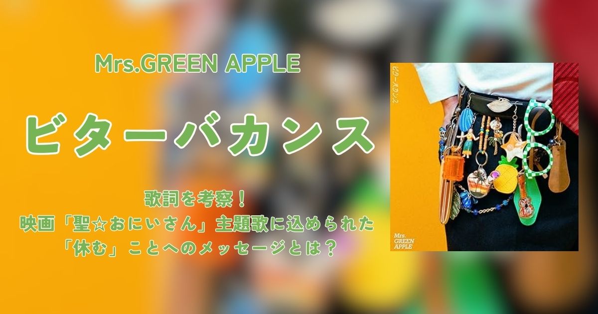 『ビターバカンス』は、今ある時間を可能な限り楽しむために、必要だと思ったら「休む」ことの大切さを歌った楽曲になっているのではないでしょうか。そのやさしいメッセージは、忙しい毎日の中で不安を抱えやすい人々の心を癒してくれると思います。