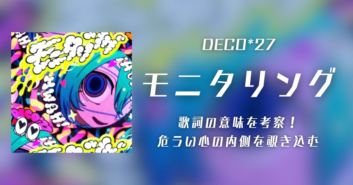 DECO*27の『モニタリング』は、相手のすべてを知りたい欲望と恋心が混ざりあった楽曲です。まるで見てはいけないものを見ているような背徳感のある曲に仕上がっていますので、気になる方はぜひ聴いてみてくださいね。