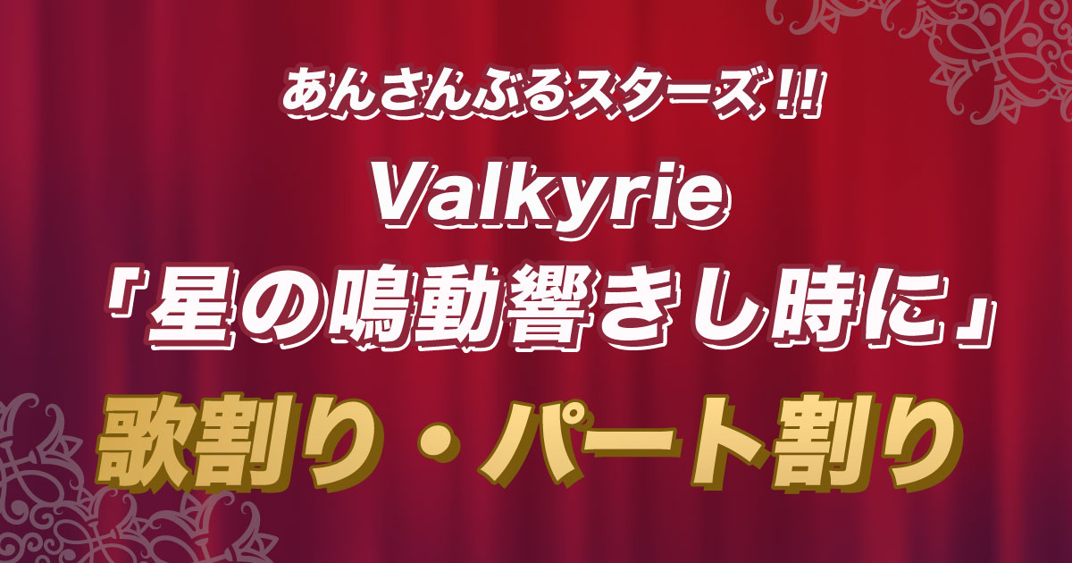 【歌割り・パート割り】あんスタ・Valkyrie「星の鳴動響きし時に」 歌割り あんさんぶるスターズ!! #あんスタ あんスタ・Valkyrie「星の鳴動響きし時に」の歌割り・パート割りをご紹介!歌詞をメンバーカラーで色分けして分かりやすく解説します! 更新日:2025年3月24日 この記事の目次 [表示] ・あんスタ・Valkyrie「星の鳴動響きし時に」歌割り・パート割り ■メンバーカラー・パート色分け [斎宮宗] [影片みか] [全員] あんスタ・Valkyrie「星の鳴動響きし時に」歌割り・パート割り 星の鳴動響きし時に 歌詞 Valkyrie 作詞 松井洋平作曲 田中公平 [宗] 世界(せかい)の外(そと)を識(し)る旅(たび)へ出(で)よ その風(かぜ)が今(いま)、帆(ほ)をはらませて [全員] 船(ふね)が未知(みち)へと進(すす)みゆき 引(ひ)き波(なみ)が消(き)え去(さ)る前(まえ)に [全員] 高(たか)きに至(いた)る指標(しるべ)とすべく 遍(あまね)く叡智(えいち)連(つら)ねた書物(しょもつ) その恩寵(おんちょう)に額(ぬか)ずく如(ごと)く 真理(しんり)の影(かげ)を只管(ひたすら)辿(たど)る [宗] 繁栄(はんえい)への欲望(よくぼう)か、 [みか] 栄光(えいこう)への焦燥(しょうそう)か [宗] 妙(たえ)なる神秘(しんぴ)の袖(そで)に触(ふ)れんと [みか] 迷宮(めいきゅう)を彷徨(さまよ)へど、幻想(げんそう)に惑(まど)へども [全員] 不変(ふへん)と信(しん)じた規矩(きく)を棄(す)てない [全員] 嗚呼(ああ)、何故(なぜ)に誰(だれ)も知(し)ろうとしない 窓(まど)から見(み)えたあの星(ほし)が巡(めぐ)り来(き)ても 寓意(ぐうい)となった理(ことわり)の檻(おり) その片隅(かたすみ)に我(われ)らを留(とど)める [全員] 理想(りそう)と現実(げんじつ)が重(かさ)ならぬなら 神意(しんい)は何処(いずこ)に宿(やど)るのか? 常(とこ)しえの摂理(せつり)を求(もと)めし者(もの)よ 天地(てんち)に滿(み)つる奇跡(きせき)を究(きわ)め [全員] 星(ほし)の鳴動(めいどう)響(ひび)きし時(とき)に 胸(むね)の望(のぞ)みに答(こた)えを示(しめ)せ [宗] だが君(きみ)の眼(まなこ)は捉(とら)えた 空(そら)を流(なが)れる星(ほし)の調(しら)べを [全員] 無明(むみょう)の夜(よる)に光(ひかり)は指(さ)した [みか] 過去(かこ)という頸木(くびき) [宗] 永遠(とわ)という渇(かわ)き [全員] 捉(とら)われの枷(かせ)を外(はず)す意思(いし)こそ [宗] 未(いま)だ定(さだ)まらぬ未来(みらい)にさえも [みか] 希望(きぼう)を見出(みいだ)す術(すべ)となるのだ [全員] 世界(せかい)の外(そと)を識(し)る旅(たび)へ出(で)よ その風(かぜ)が今(いま)、帆(ほ)をはらませて 船(ふね)が未知(みち)へと進(すす)みゆき 引(ひ)き波(なみ)が消(き)え去(さ)る前(まえ)に [全員] 世界(せかい)の果(は)てを識(し)る旅(たび)へ出(で)よ 指標(しるべ)無(な)くとも、命尽(いのちつ)くまで 星(ほし)降(ふ)る夜(よ)一夜(ひとよ)の衝動(しょうどう)は 胸(むね)からは消(き)えぬのだから [全員] 昔日(せきじつ)の栄華(えいが)に焦(こ)がれし者(もの)よ 天地(てんち)に滿(み)つる奇跡(きせき)を探(さが)せ 鳥(とり)籠(かご)の中(なか)の探究(たんきゅう)の徒(と)よ 天地(てんち)に滿(み)つる奇跡(きせき)を謳(うた)え [全員] 星(ほし)の鳴動(めいどう)響(ひび)きし時(とき)に 胸(むね)に歓(よろこ)び溢(あふ)れたならば 鳥(とり)は自由(じゆう)に舞(ま)うのではない 風(かぜ)の行方(ゆくえ)を捉(とら)え飛(と)ぶのだ あんスタ歌割りまとめ UtaTenオタク部 あんさんぶるスターズ!! 歌詞ランキング 関連動画 特集記事 最新情報 最新のコラム&特集をもっと見る