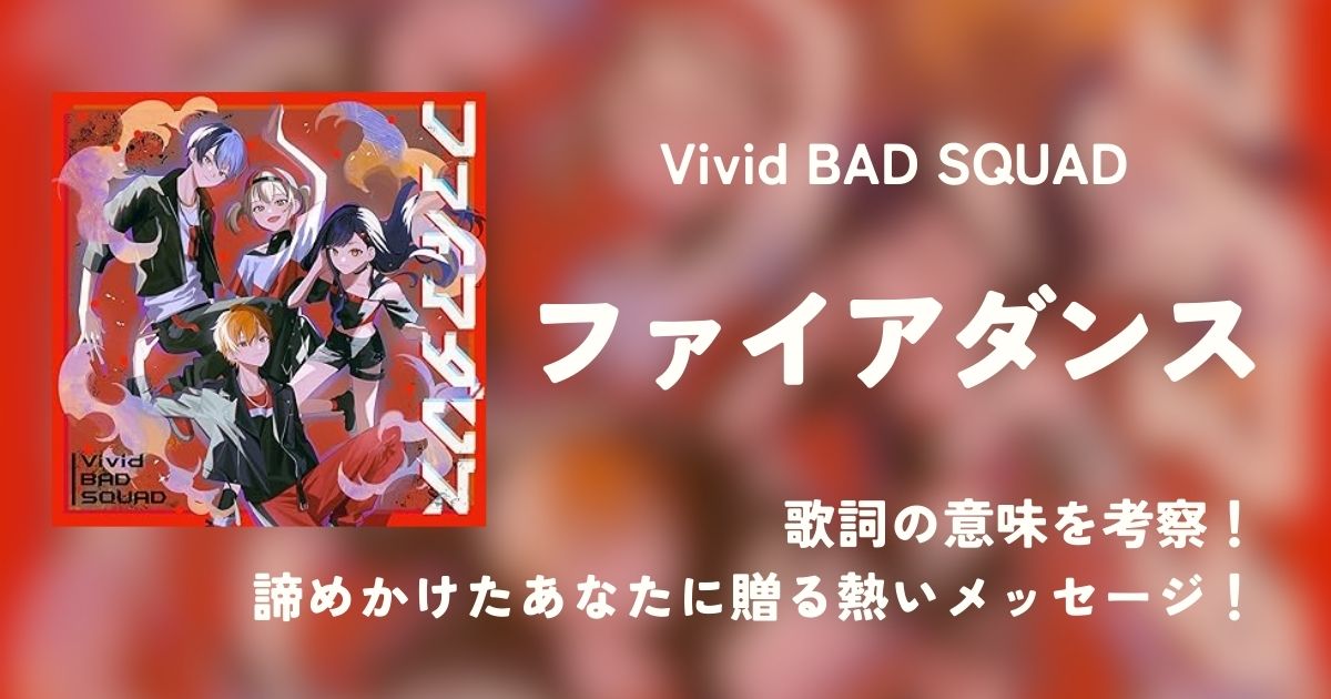 Vivid BAD SQUADが歌うプロセカの『ファイアダンス』は、夢や目標を追いかける中で諦めかけた時に聴くと、力強い勇気をもらえる曲です。