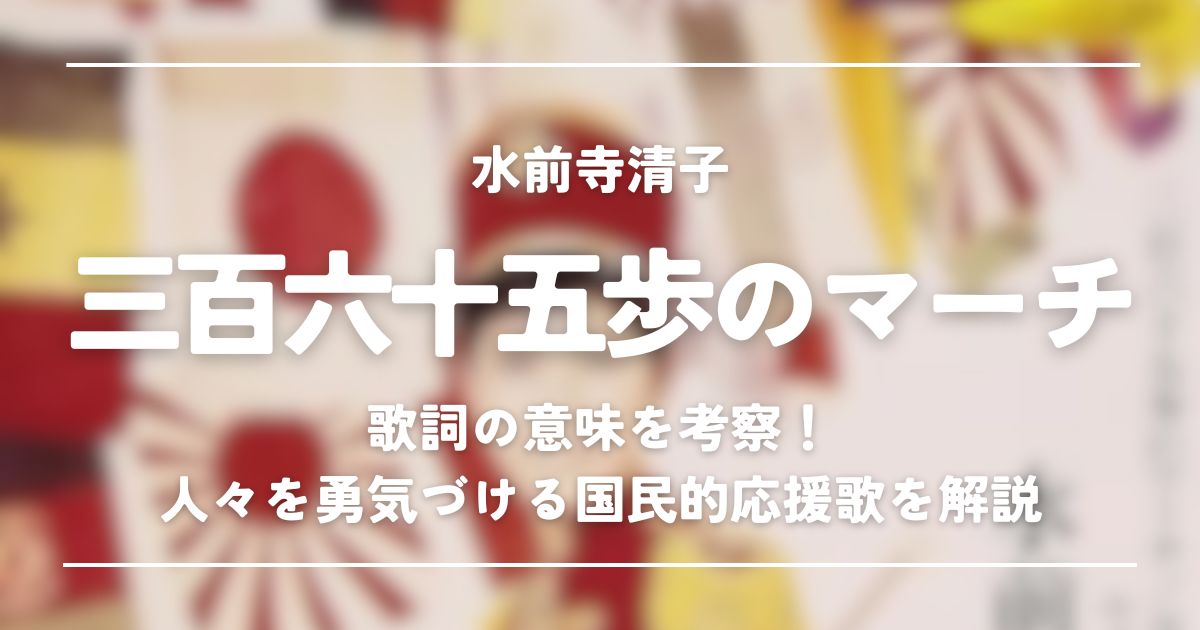 水前寺清子の『三百六十五歩のマーチ』は、人々を勇気づけ元気を与える歌詞が印象的な楽曲です。マーチ=行進曲のように一歩一歩自分の足で歩いていくことの大切さが描かれています。