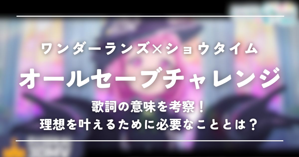ワンダーランズ×ショウタイムの『オールセーブチャレンジ』は、自分の弱さや未熟さを受け止めて強く前進しようとする想いが垣間見える楽曲です。ワンダショVer.とボカロVer.でそれぞれ異なるMVがあり、同じ歌詞でありながら違うニュアンスを感じられるのも興味深い点です。