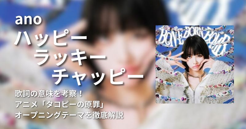 anoの『ハッピーラッキーチャッピー』は、配信アニメ『タコピーの原罪』のオープニングテーマです。『ハッピーラッキーチャッピー』は、2025年6月4日リリースのanoのセカンドアルバム『「BONE BORN BOMB』に収録されています。