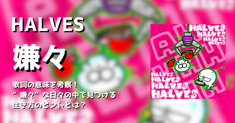 HALVESの『嫌々』は、毎日誰もが経験する嫌な出来事や世間の風潮を斬新な言葉で表現した楽曲です。