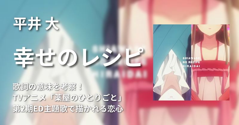 報われない恋に心が痛んでも、平井 大「幸せのレシピ」アニメMV│TVアニメ『薬屋のひとりごと』第2期 EDテーマという言葉に、晴れやかな気持ちが垣間見えます。
